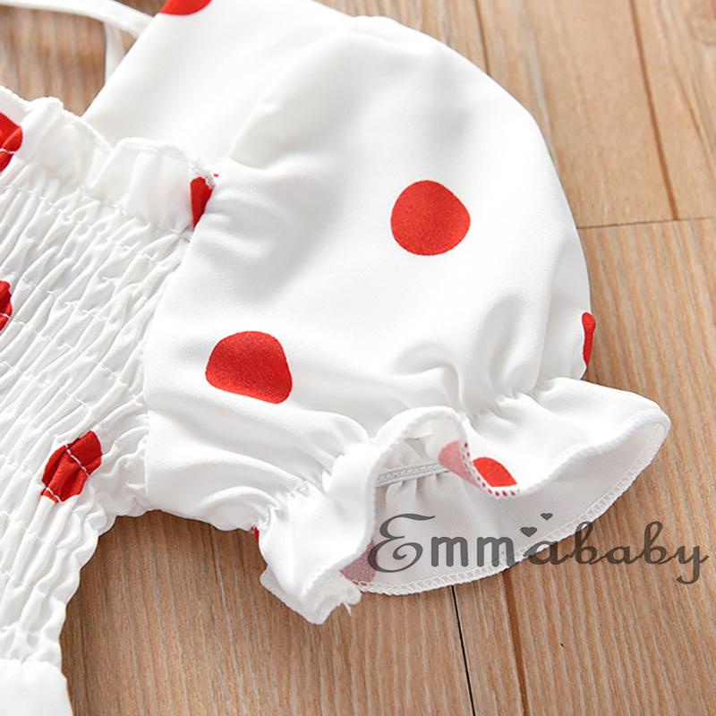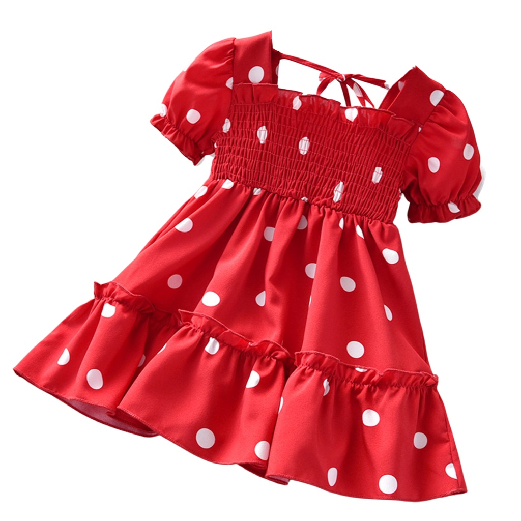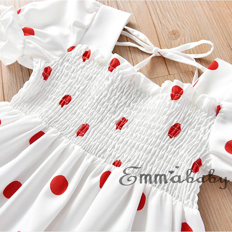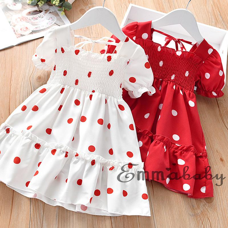 Emma-Kids Girls Summer Fashion Short Sleeve Polka Dot Dress for Little Girls Chiffon Princess Dress,Red/White