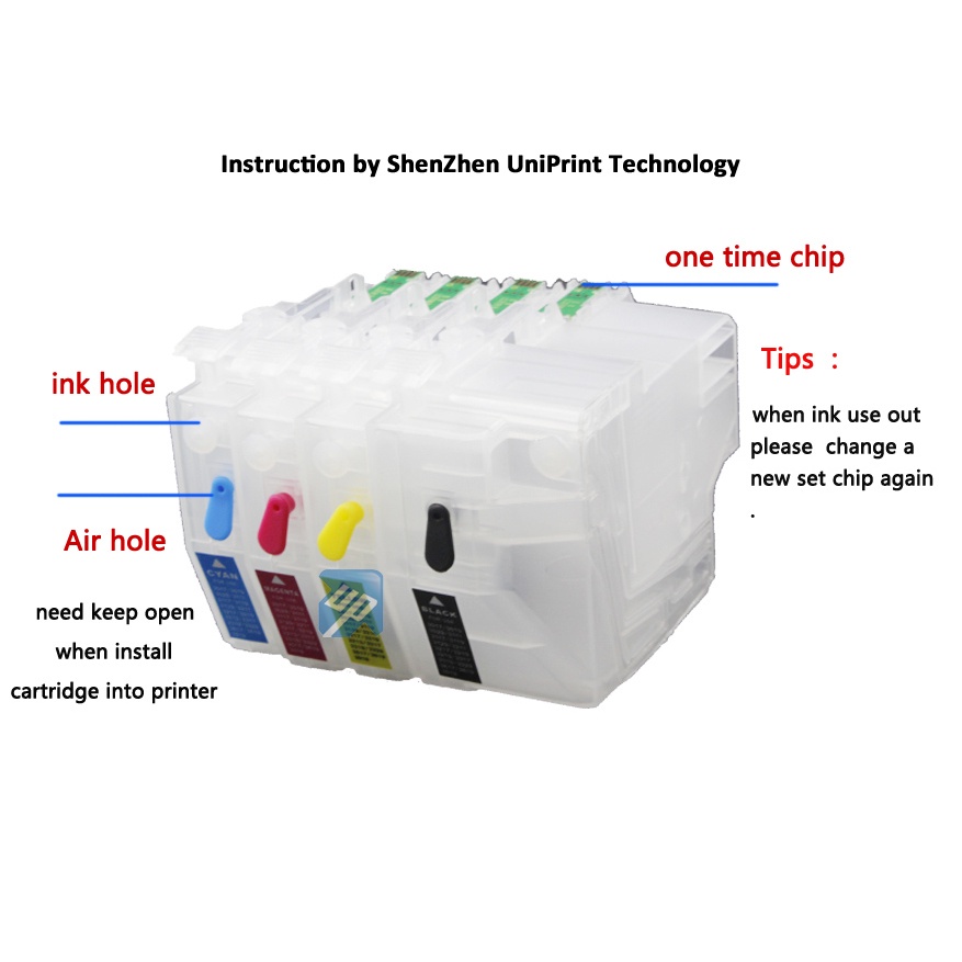 Empty Refillable Ink Cartridge with High Capacity Chip LC462 LC462XL for Brother MFC-J2340DW J2740DW J3540DW J3940DW Printer