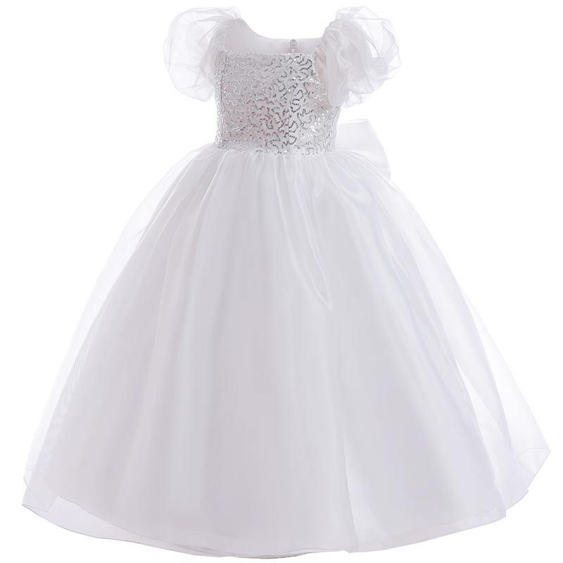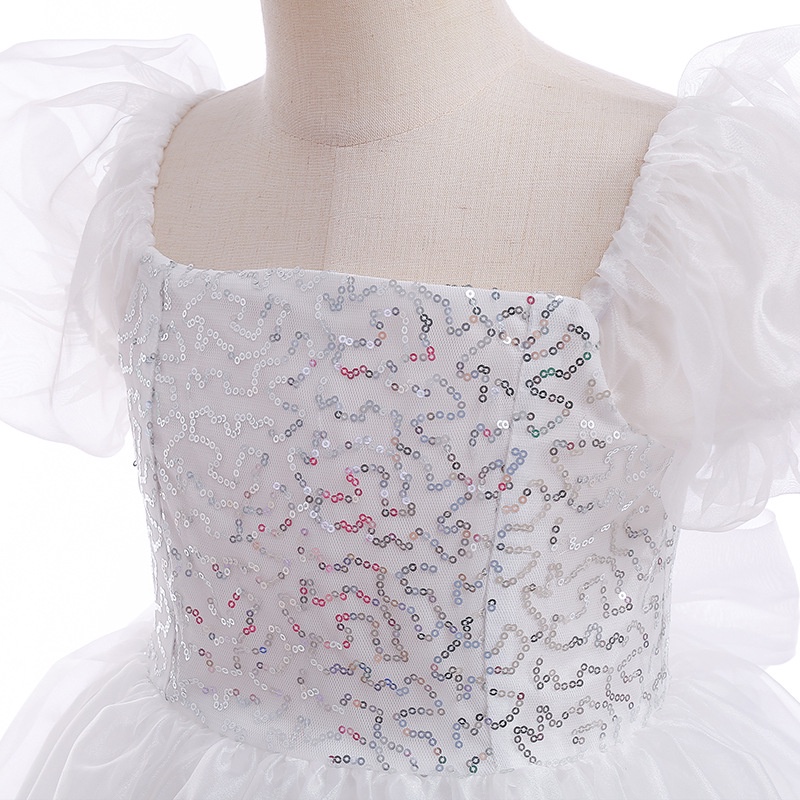 Enchanted Gown Puff Sleeve Children White Puffy Dress Long Performance Costume Princess Dress for Kids Baby Girl Outfit