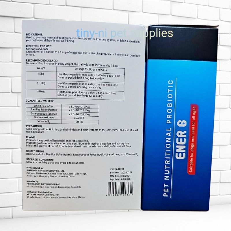 Ener G Powder for Pet Dogs and Cats| 5g/sachet Helps Intestinal Digestion Probiotics