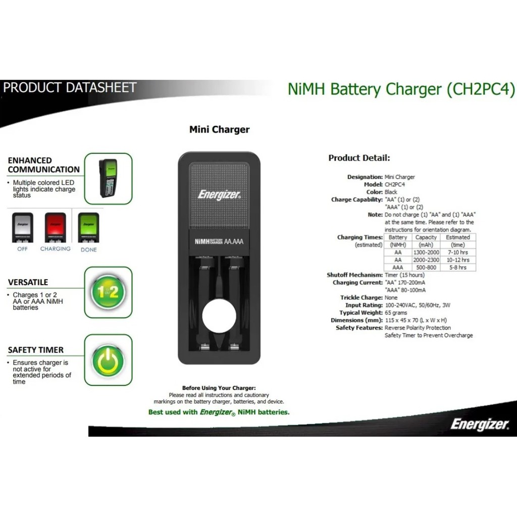 Energizer Mini Charger for AA and AAA Batteries with FREE 2 Rechargeable AAA Batteries CH2PC4