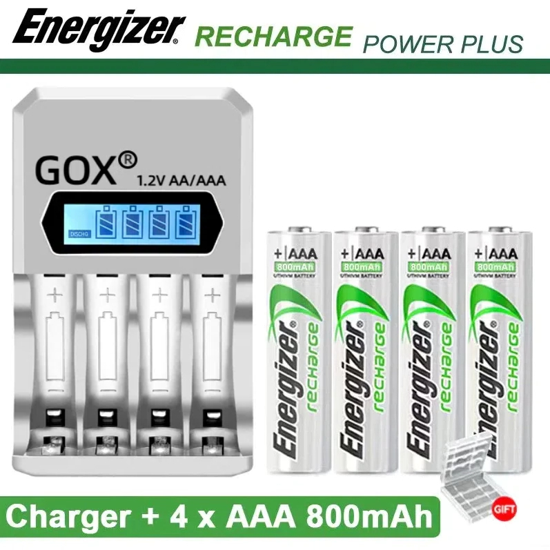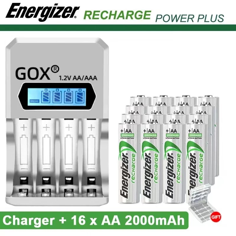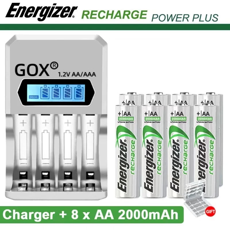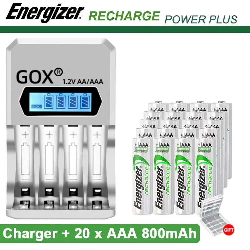 Energizer Rechargeable Battery Bundle - AA/AAA 1.2V 2000/800mAh with Upgraded LCD Display Charger