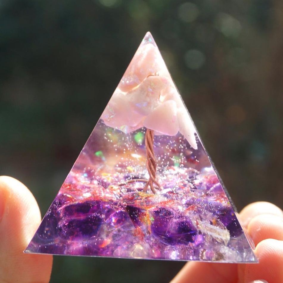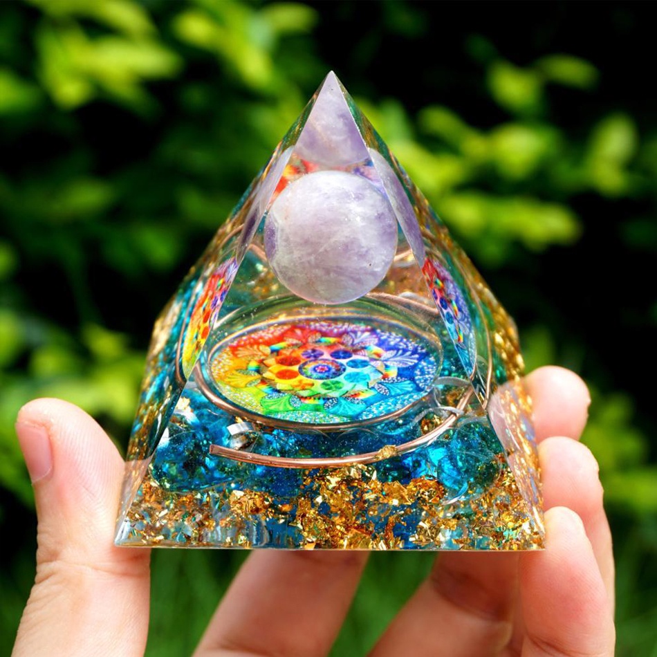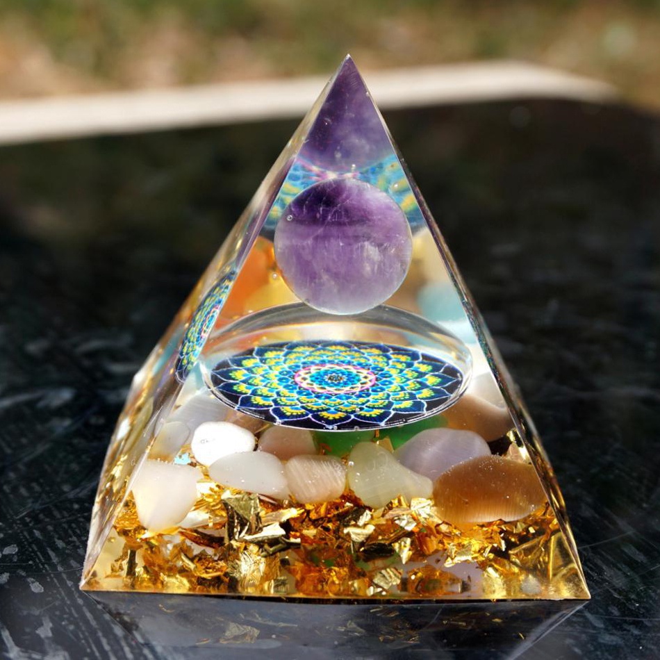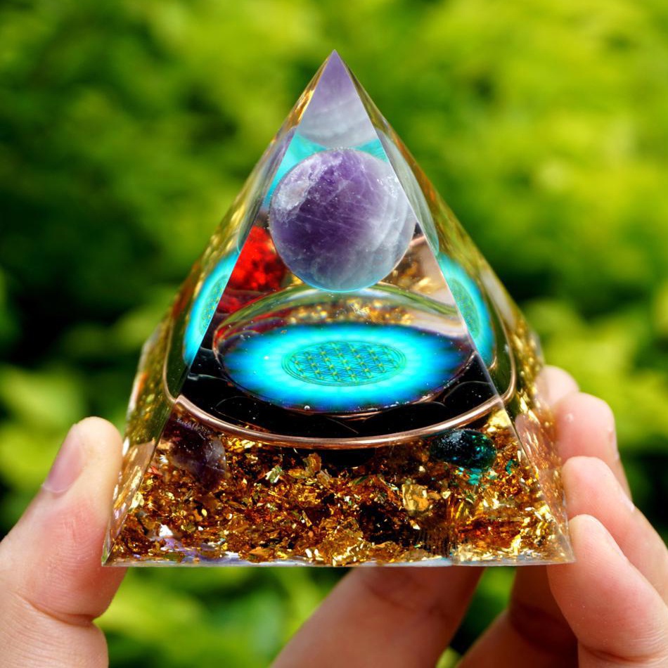Energy Generator Orgone Pyramid Amethyst Peridot Healing Natural Crystal Reiki Chakra Generator Orgonite Pyramid Meditation Tool