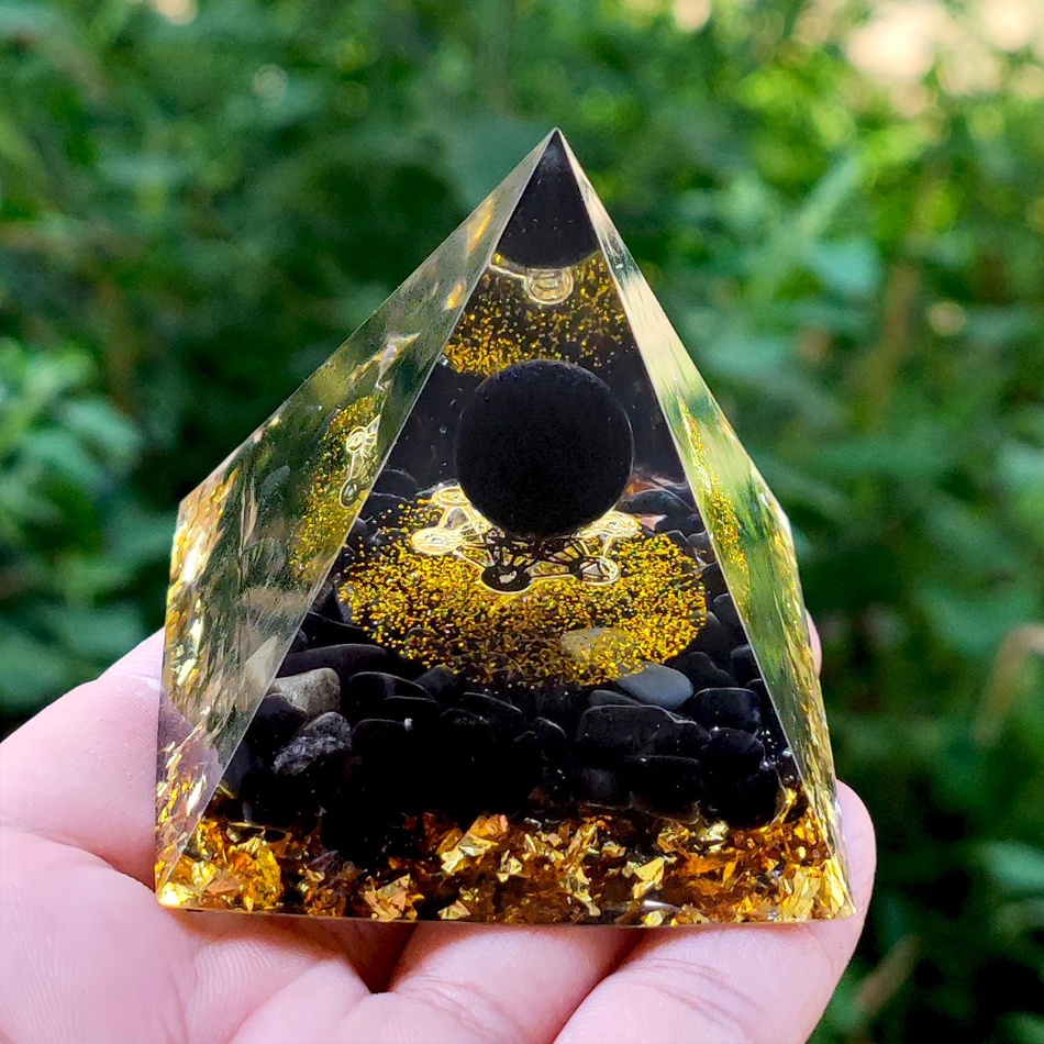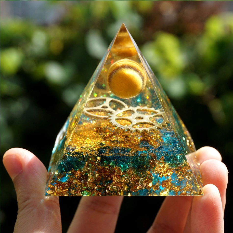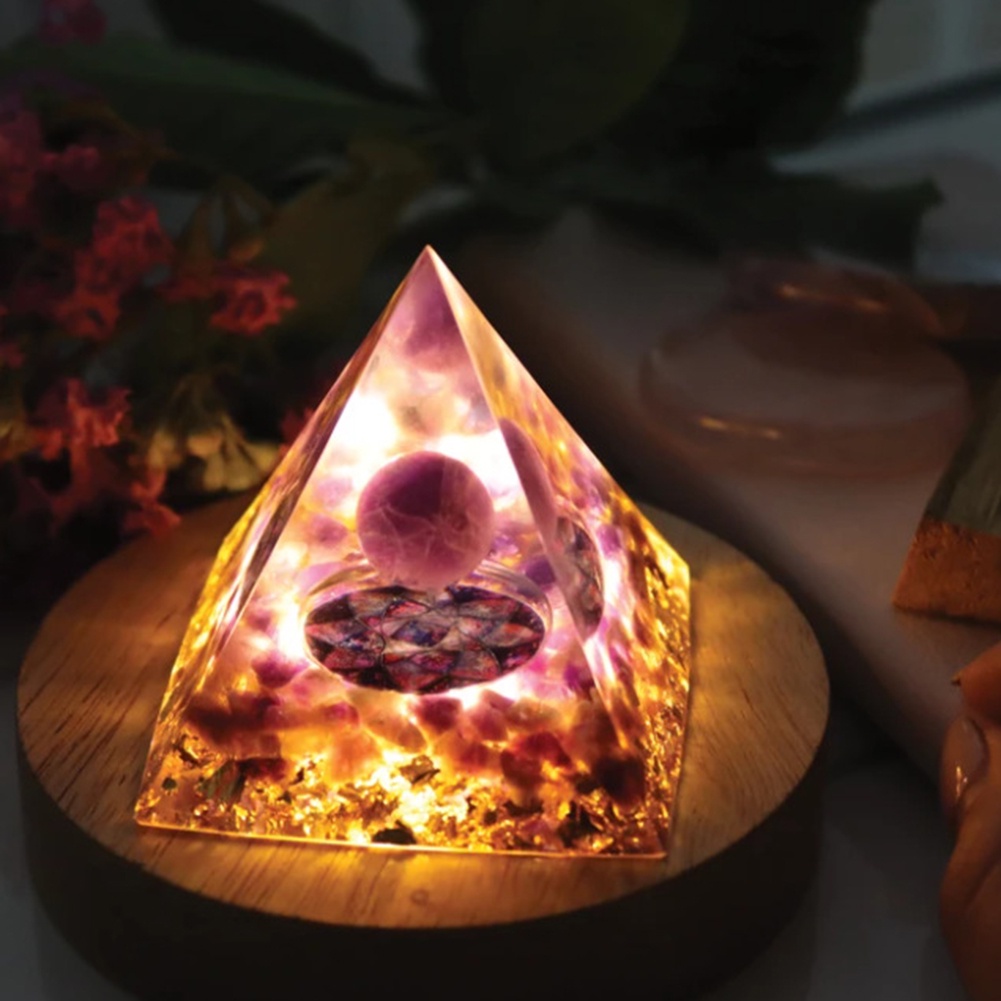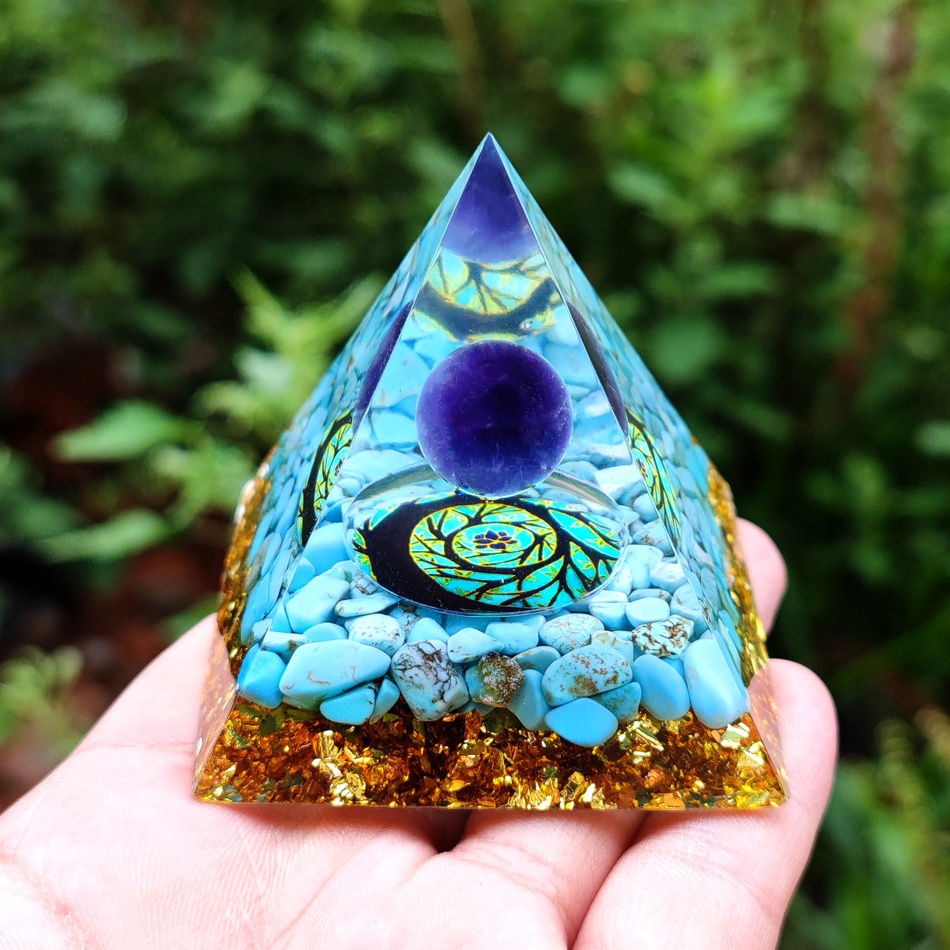 Energy Generator Orgone Pyramid Amethyst Peridot Healing Natural Crystal Reiki Chakra Generator Orgonite Pyramid Meditation Tool