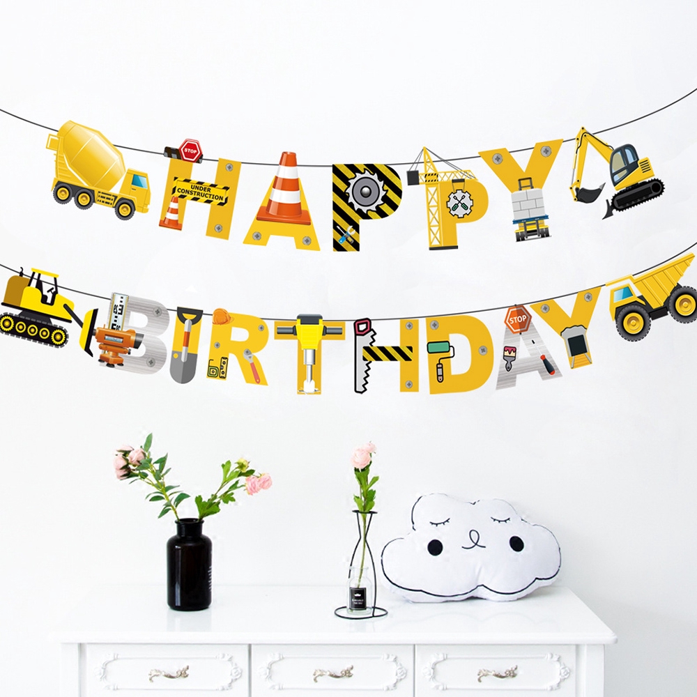 Engineering Car Happy Birthday Banner for Birthday Party Decorations Supply