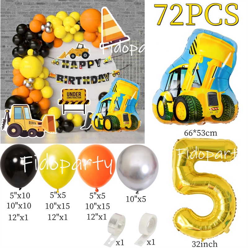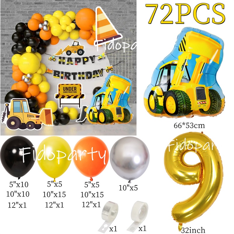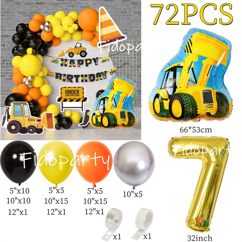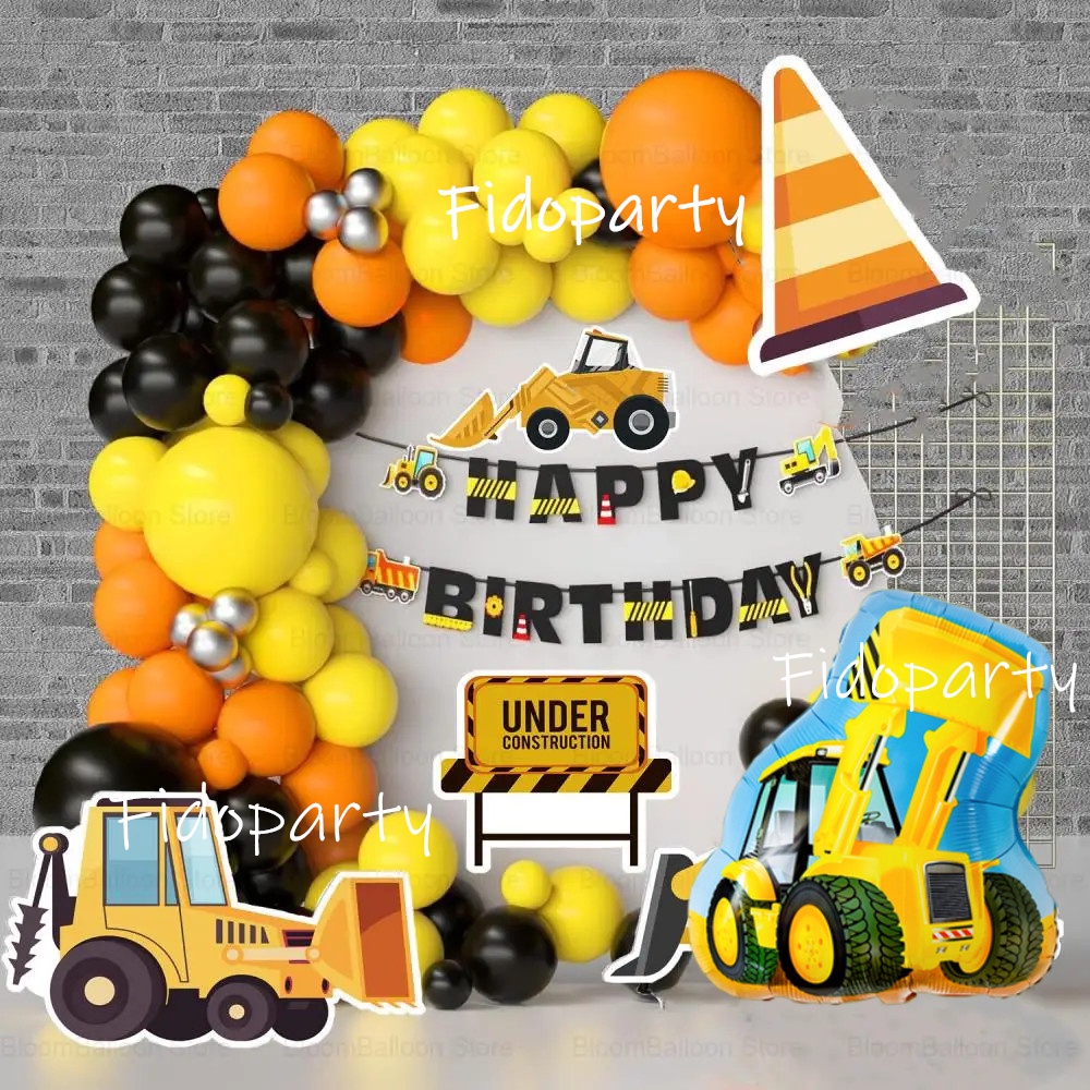 Engineering Vehicle Balloon Arch Kits Crane Fire Truck Foil Balloons Boy Birthday Baby Shower Party Decoration Supplies