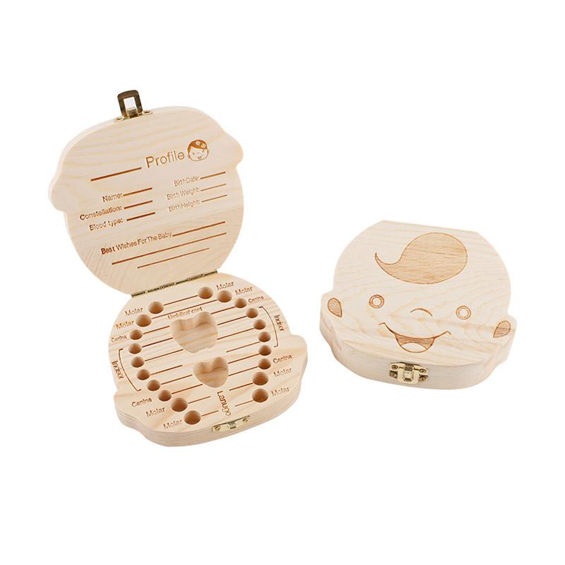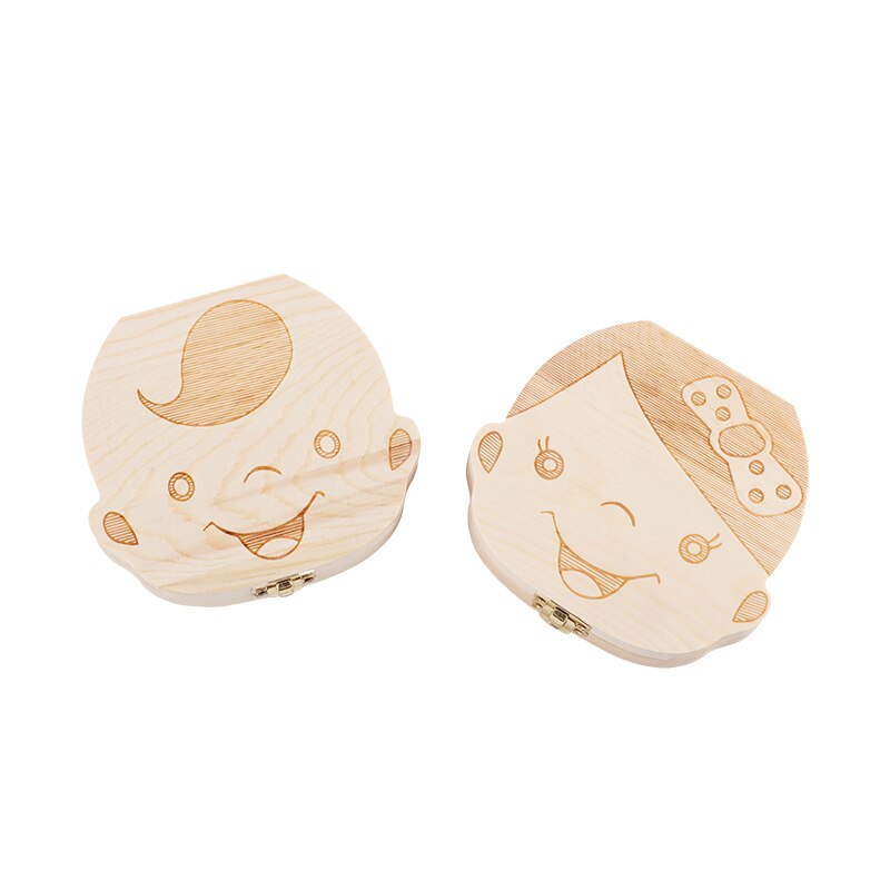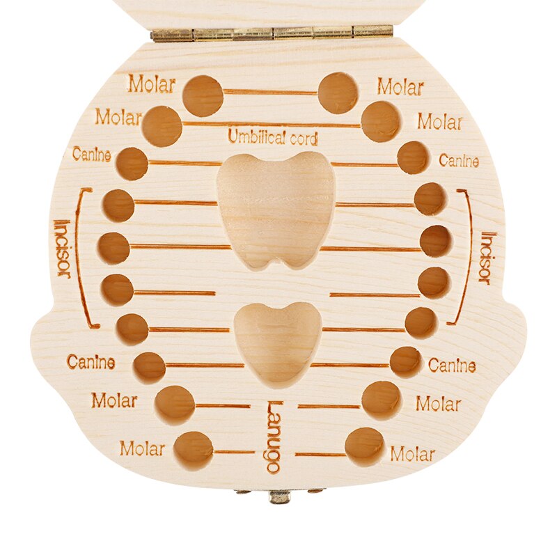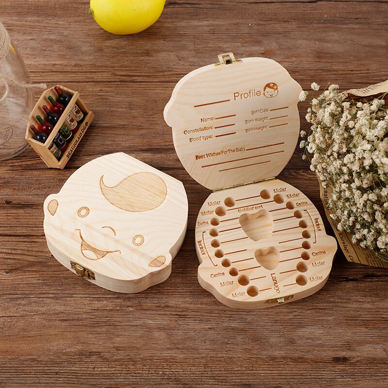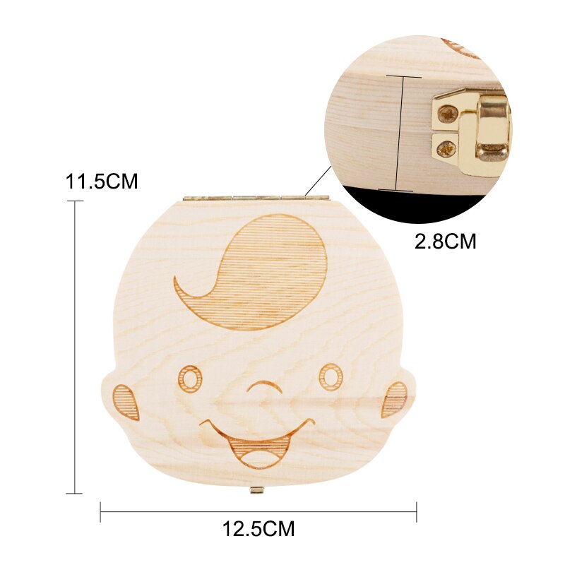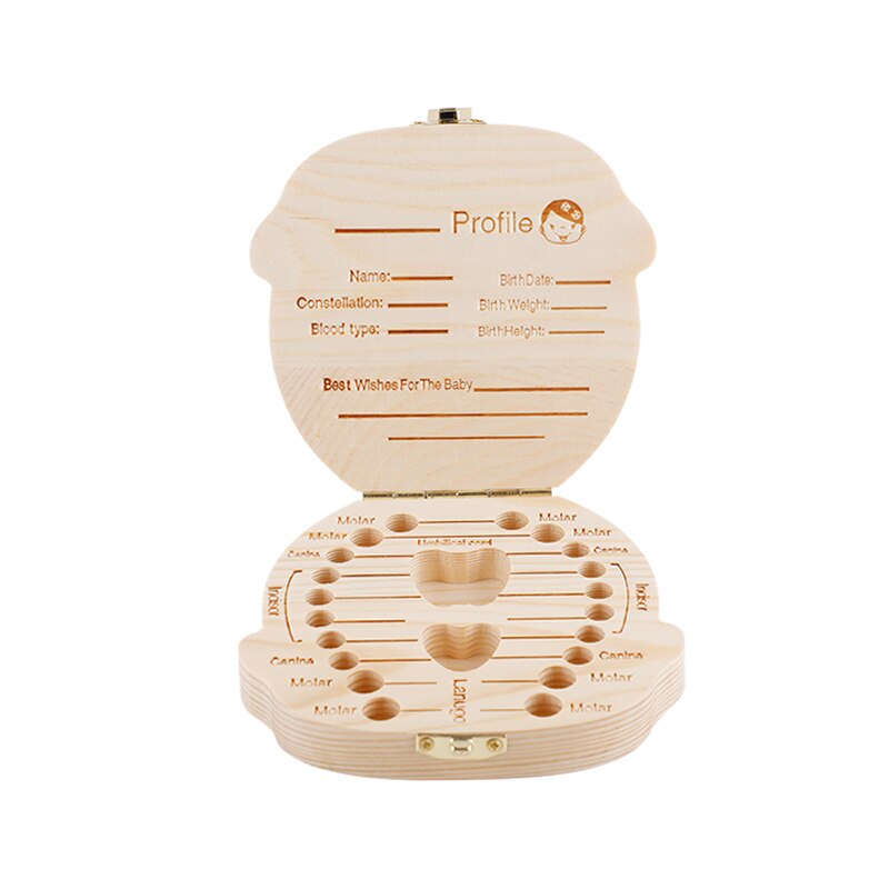 English Wooden Tooth Box Umbilical Cord Collection Baby Milk Teeth Storage Boxes Holder Kids Teeth Case Organizer Souvenir Box Baby Growth Record