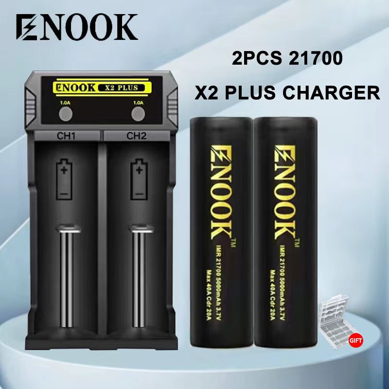 Enook Battery 18650/21700 Rechargeable Battery 3.7v Lithium Battery with Enook X2Plus charger
