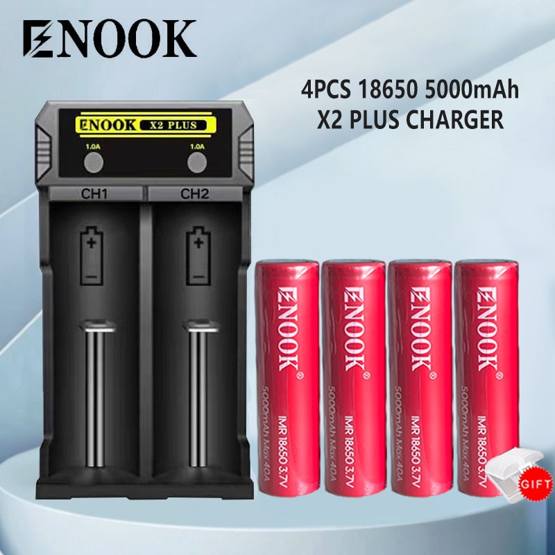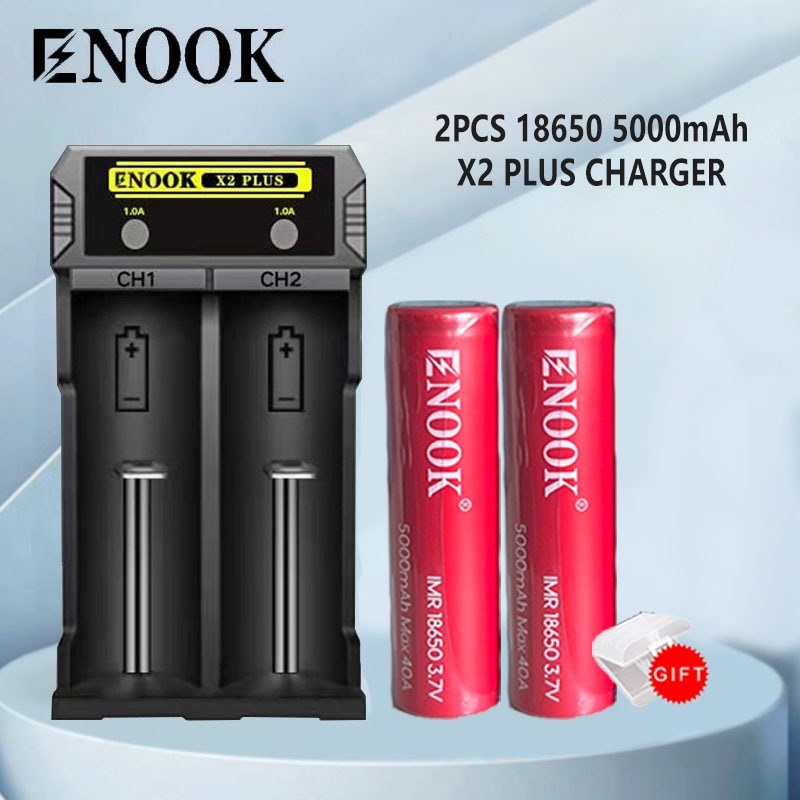 Enook Red 18650 5000mAh 40A Rechargeable battery 3.7v lithium ion battery with Enook X2Plus 2-Slot charger