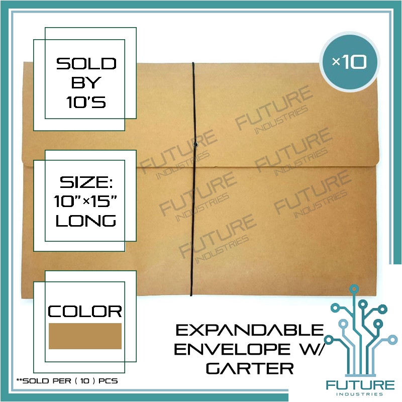 Envelope Expandable With Garter Long Kraft Brown Blue Yellow Hot Pink Green Red [Future Ind]