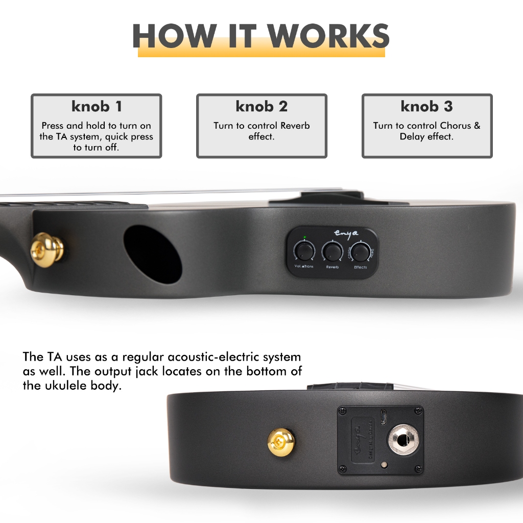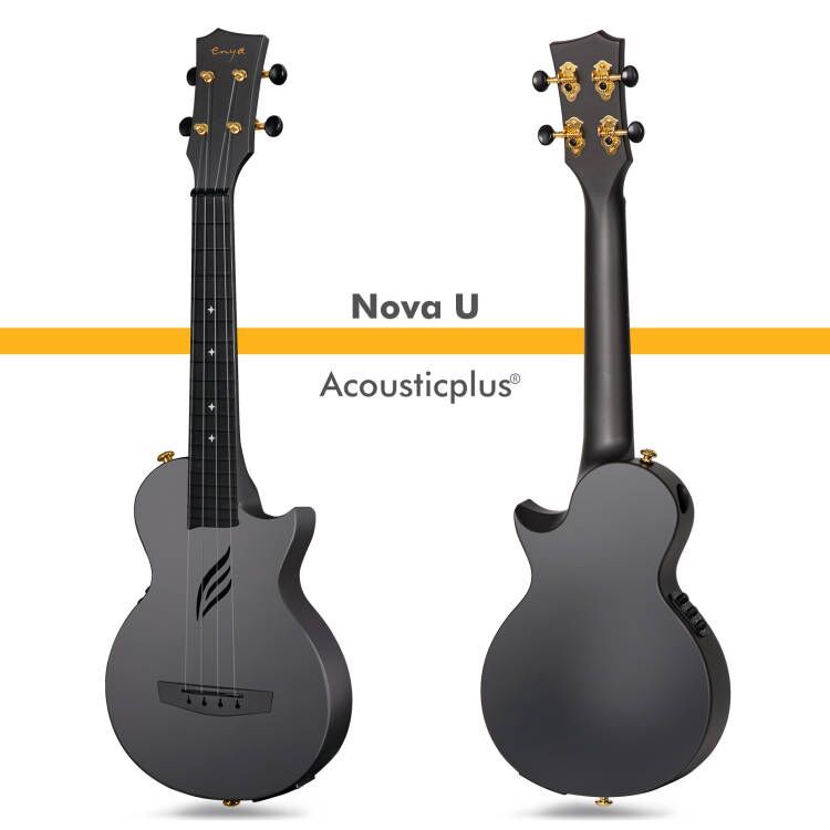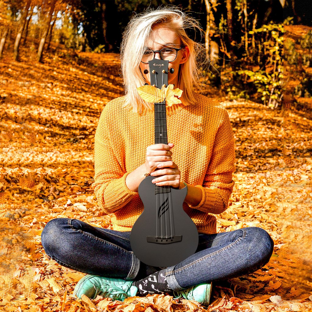 Enya Nova UE Pro Ukulele with pick up Carbon Fiber Ukulele Acousticplus Cutaway Travel Ukelele for Adult with Beginner Bundle Kit Including Case, Strap, Capo and Strings