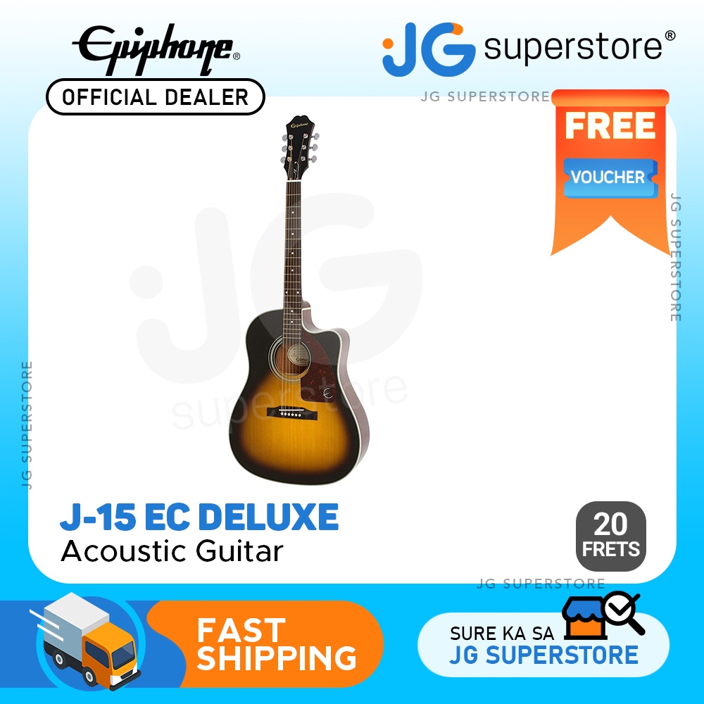 Epiphone J-15 EC Deluxe 20-Fret Acoustic Guitar w/ NanoFlex Low-Impedance Pickups & Hard Case