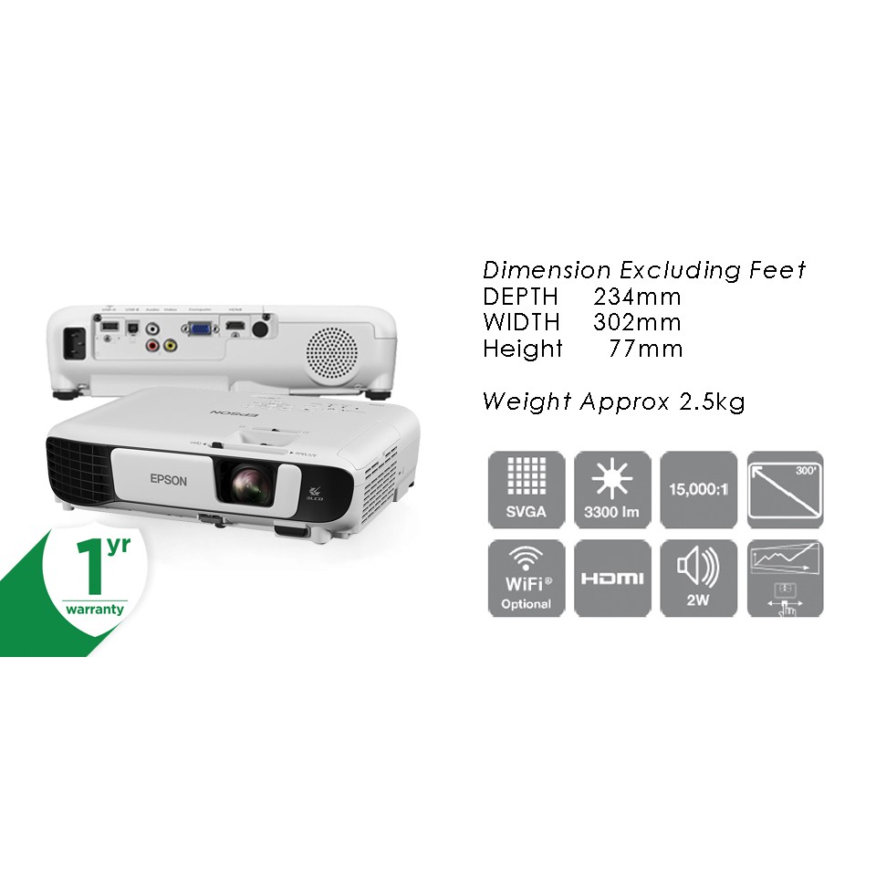 Epson EB-S41 Projector (3300 Lumens, SVGA, 3LCD, Offices and Schools)