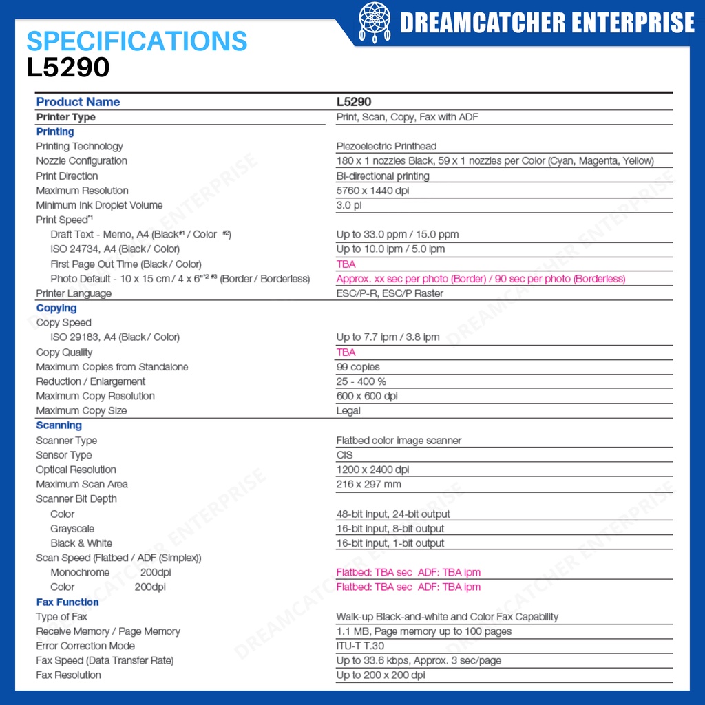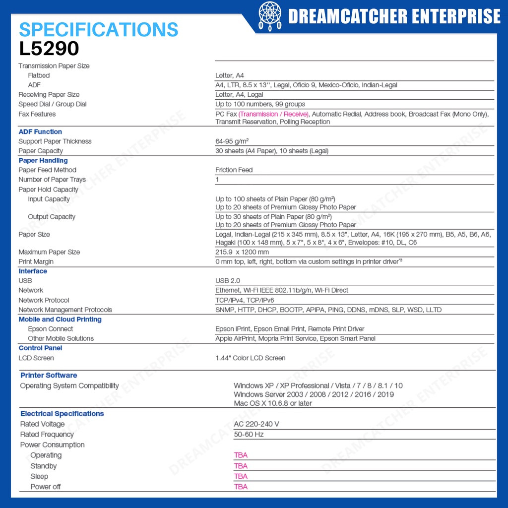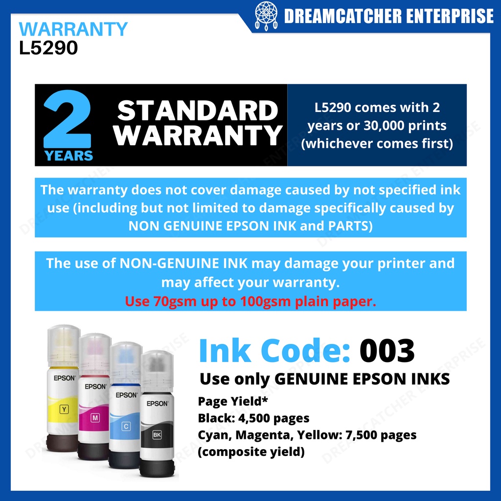 Epson L5290 EcoTank Wi-Fi Printer Print Scan Copy Fax ADF Uses 003 Ink [Brand New Original]