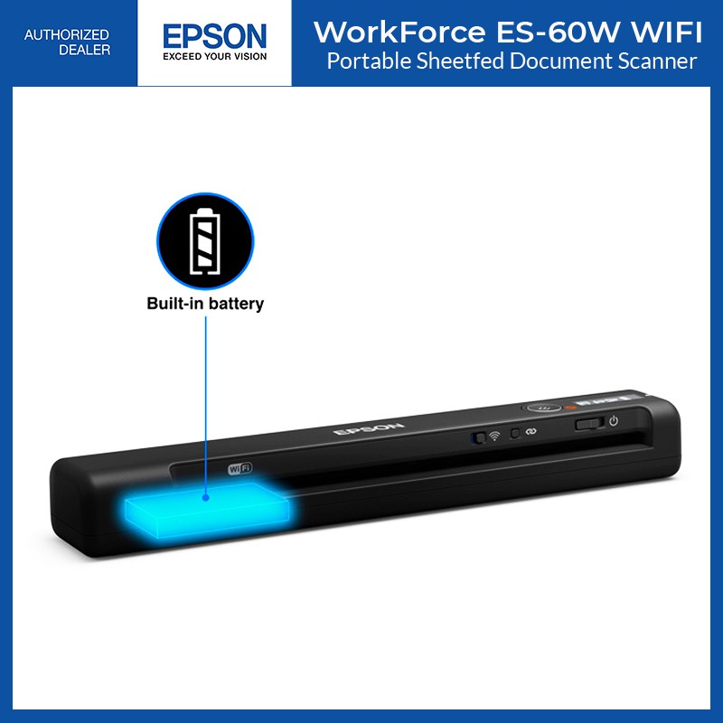 Epson Work Force ES-60W Scanner WIFI Portable Sheet Fed Document Scanner 35gsm to 270gsm Capacity