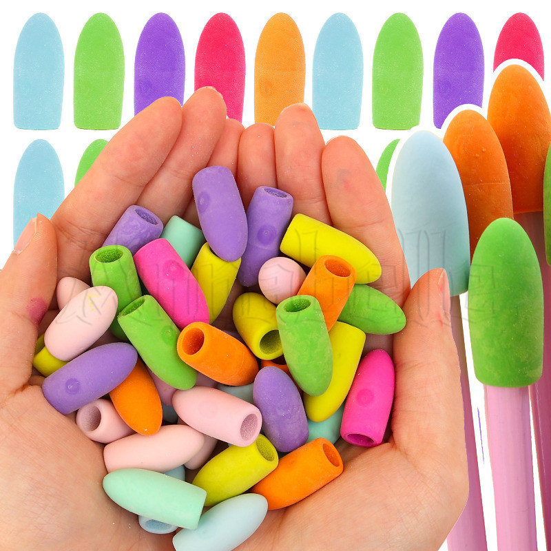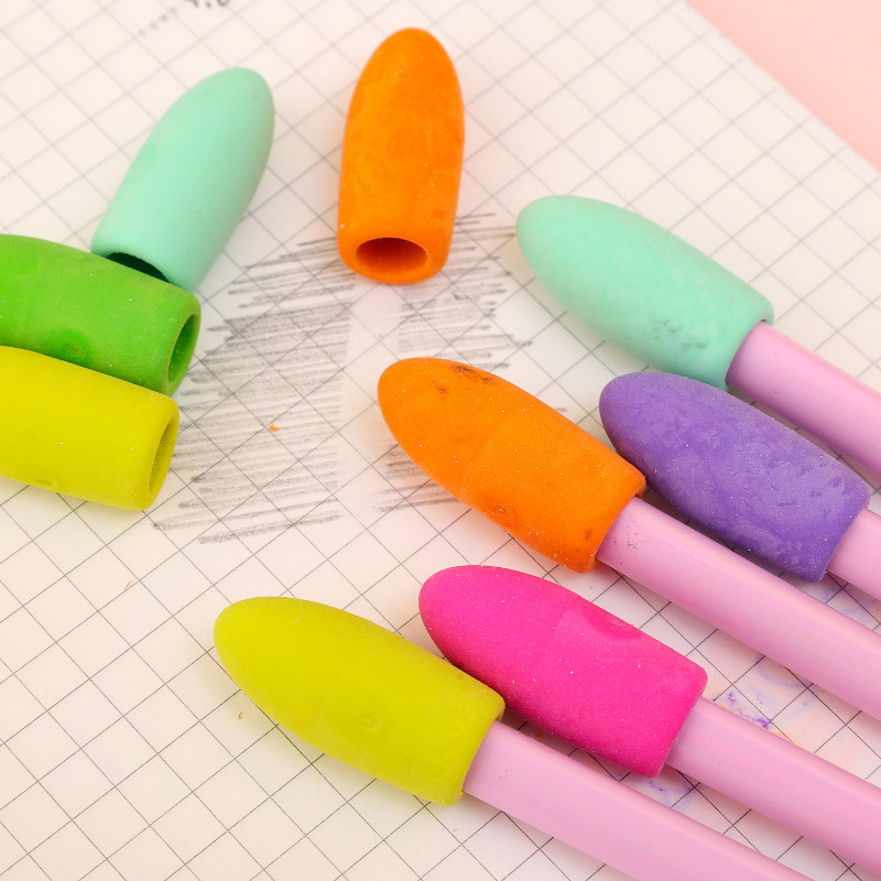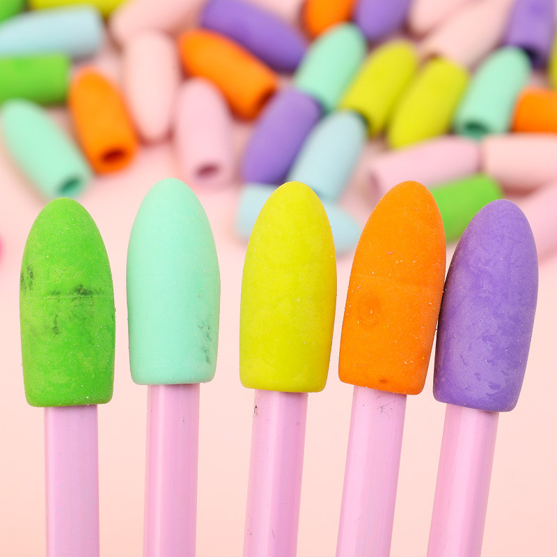 Eraser Pencil Caps - 2 In 1 Pupil Pencil Tip Cap Eraser - Removable Pencil Eraser - Colorful Cylinder-Shaped Rubber Pencil Tips - School Office Supplies