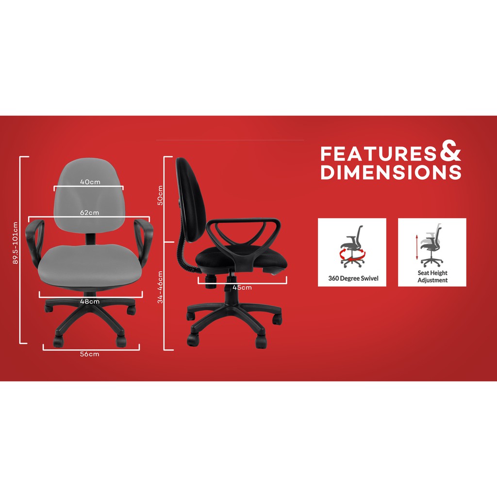 Ergodynamic OCA-103GRY Office Chair Furniture (Grey) Office Furniture Work Furniture w/ Armrests