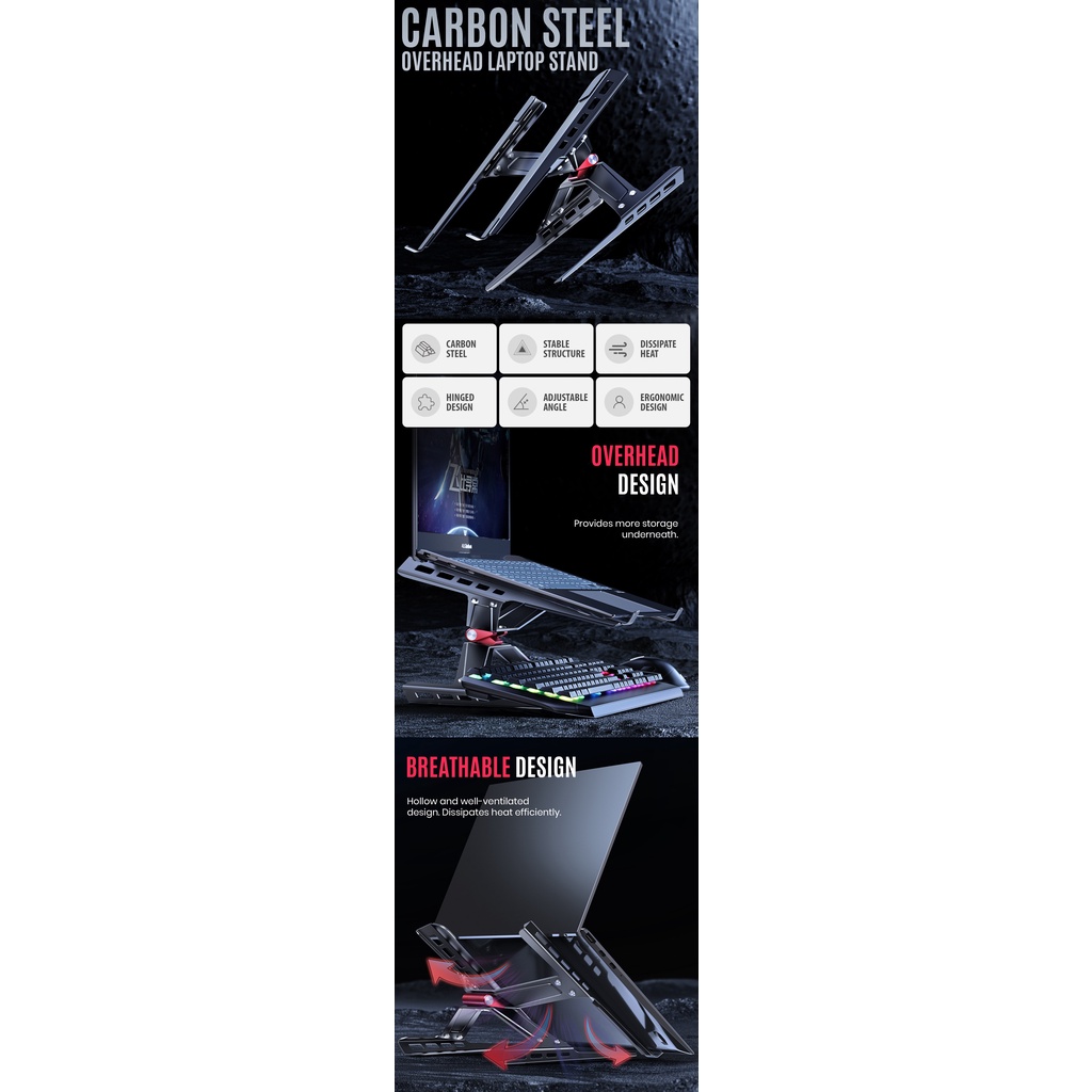 Ergonomic Carbon Steel Laptop Stand Riser for 18" Screen-sized Laptops Overhead Laptop Dock
