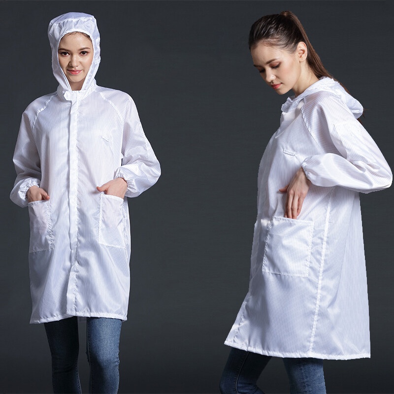 Esd Smock Round Neck with Zip Hooded Design Antistatic Ppe Gown Washable Lab Coat Cleanroom Suit Work Jacket