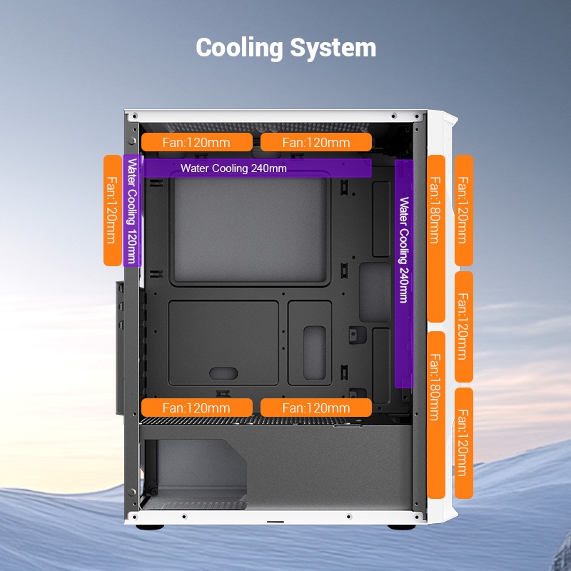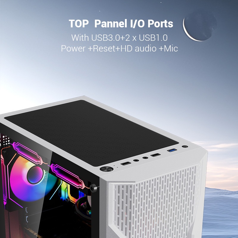 Esgaming F09 PC Case Tempered Glass Gaming Computer Casing ATX Desktop Case White Mesh Gaming Case