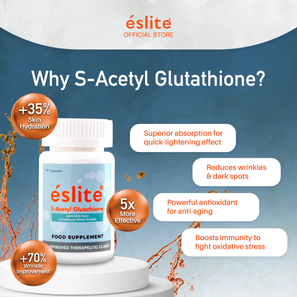 [OFFICIAL] Eslite S-Acetyl Glutathione (Anti Aging and Skin Whitening Gluta Capsule) 30 Capsules