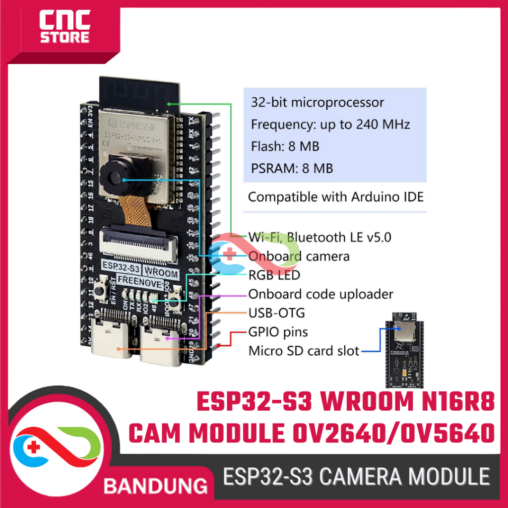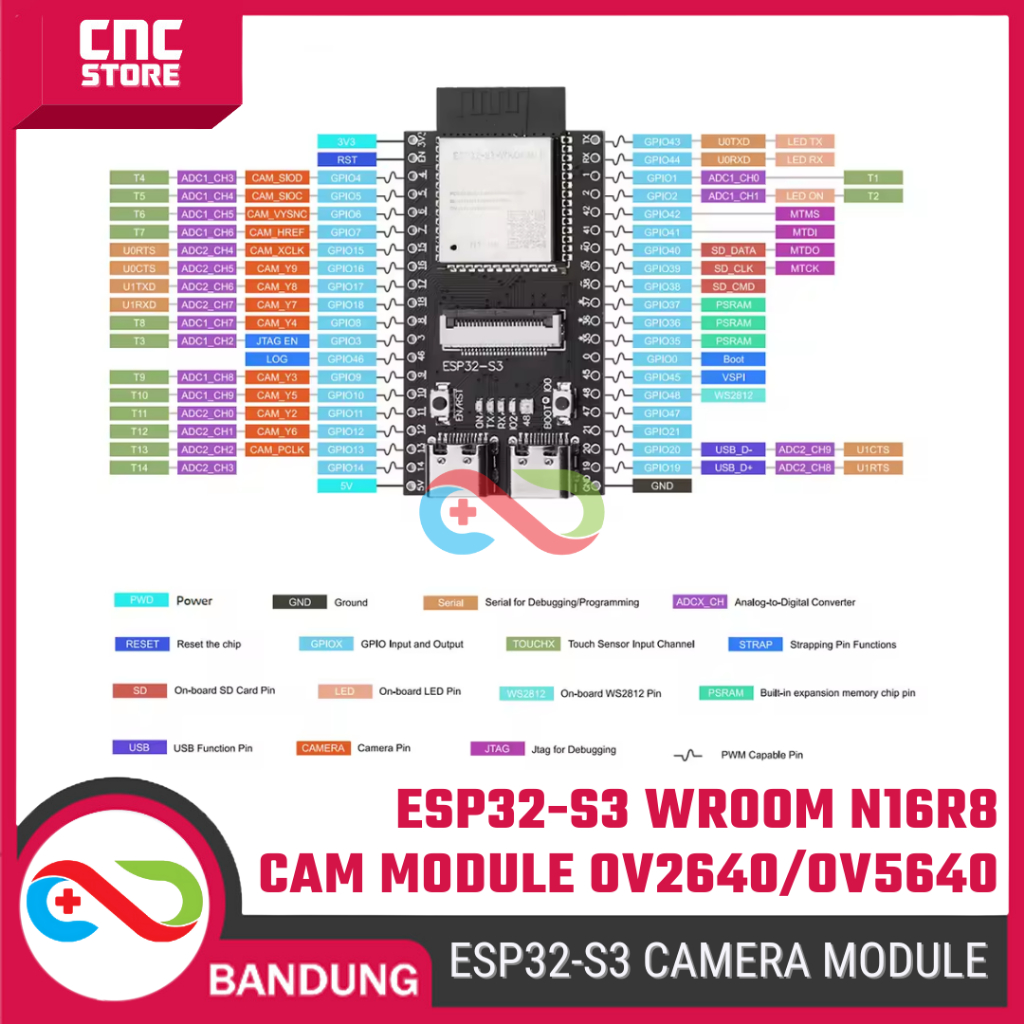 ESP32-S3 WROOM N16R8 CAM Module – Camera OV2640/OV5640/OV3660 Dev Board IoT Vision