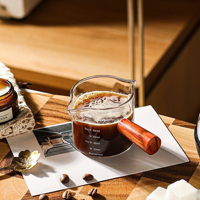 Espresso shot Glass Measuring Cup with Wooden Handle Double Mouths Milk Cup 75ml Coffee Shots