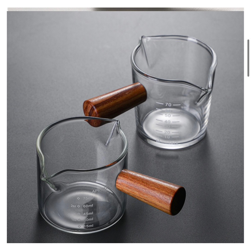 Espresso shot glass wooden handle Double Spout Measuring Pitcher Milk Cup 75 ml