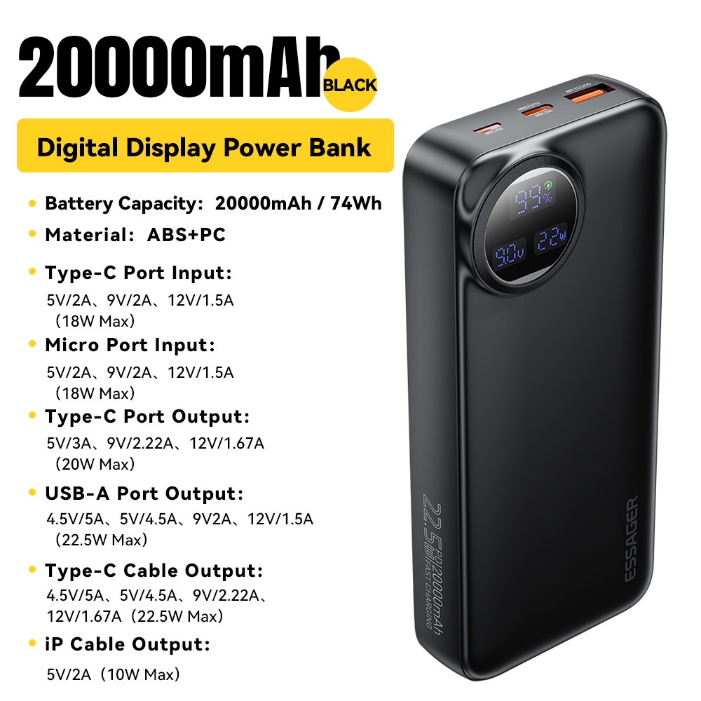 Essager 22.5W Power Bank 10000 & 20000 Mah Adapter for IP Samsung phone Fast Charger