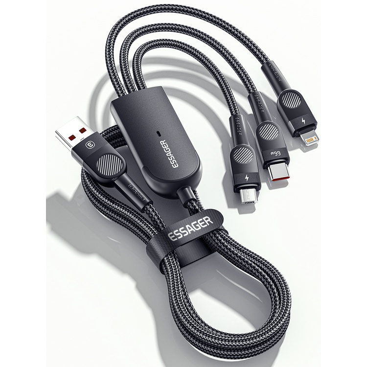Essager 3 in 1 Charging Cable 6A 66W LED Type c Fast Charging Cable For iP&Android Phone