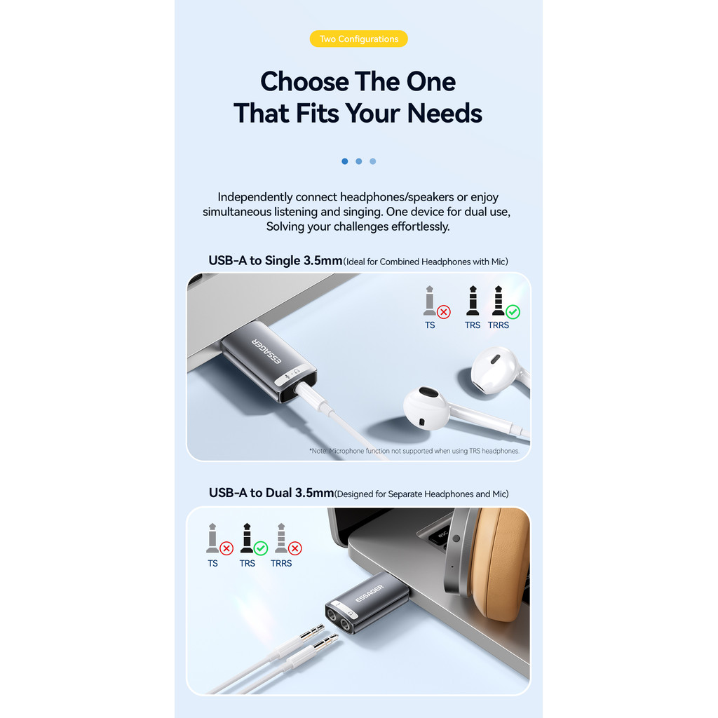 Essager 3.5mm USB/Type-C External Sound Card Independent Audio Converter Universal Free driver For Audio Headphone Microphone Computer