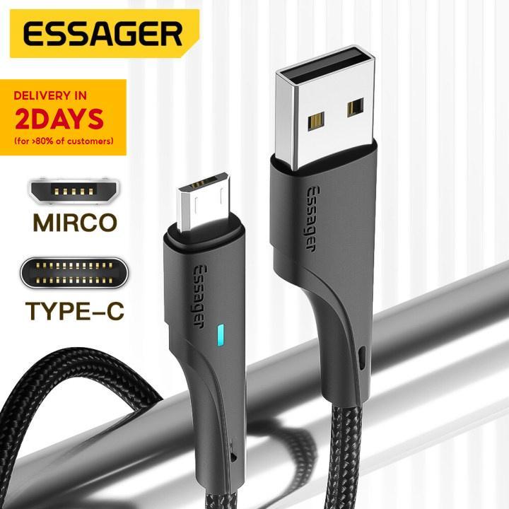 Essager 3A Fast Charging Cable Data Cable for Android Mobile Phone Type C Charging Cable Power Cablemicro usb charger