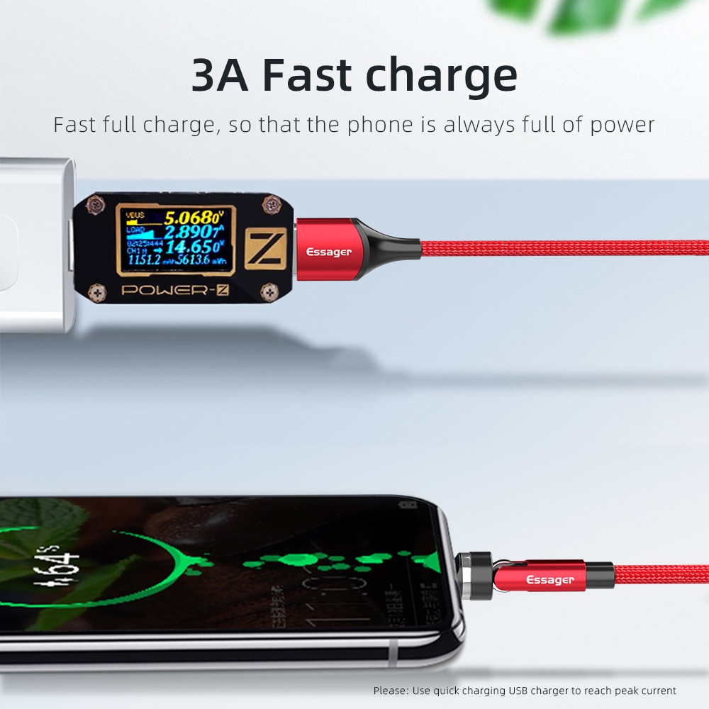 Essager 540 Rotate Magnetic Cable 3A Fast Charging Micro USB Type C Cable For iP Xiaomi Magnet Phone Charger Data Wire Cord