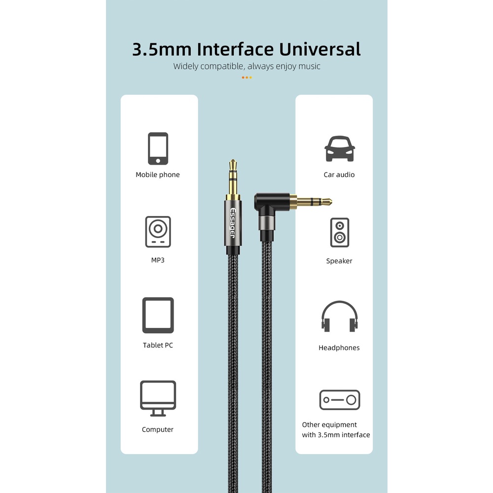Essager AUX15 3.5mm Jack AUX Cable Cord Male to male Aux Audio Cable Jack Microphone for Speaker Degree Right Angle Audio Cable for Car Headphone MP3/4