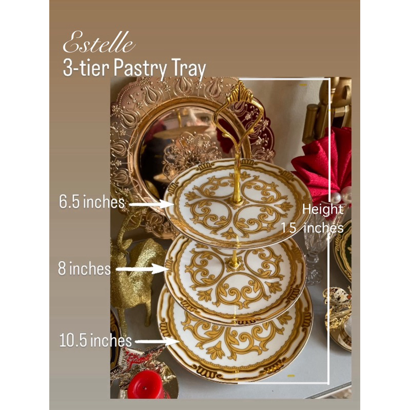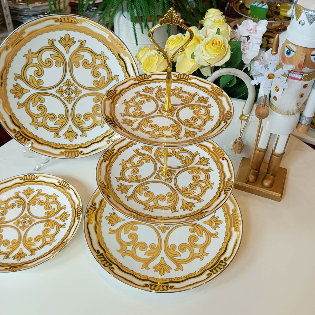 Estelle 3-tier Pastry Tray - Bone China Cake Tray