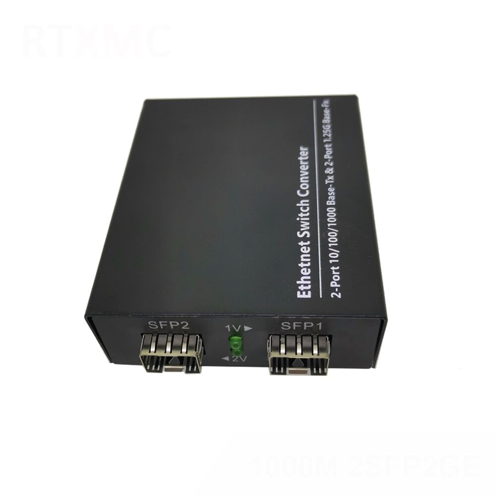 Ethernet Fiber Optical 2 SFP fiber Port 2 RJ45 2 UTP 10/100/1000M Media Converter Gigabit 2 RJ45 UTP