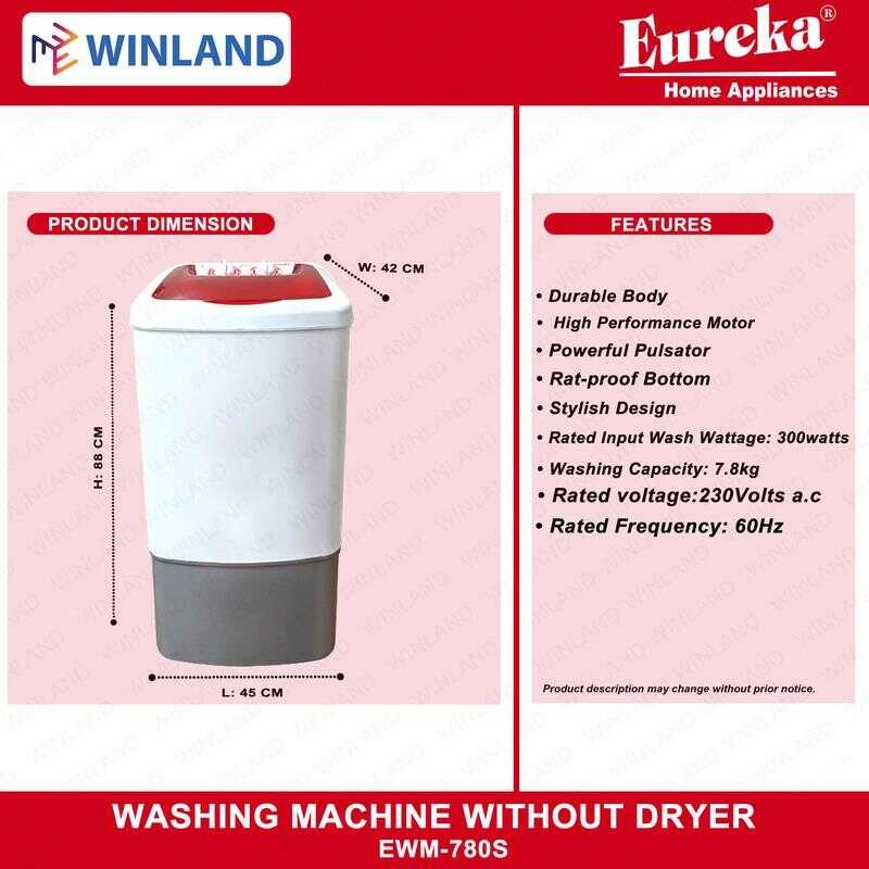 Eureka By Winland Eco Friendly Single Tub Washing Machine Without Dryer Ewm-780S