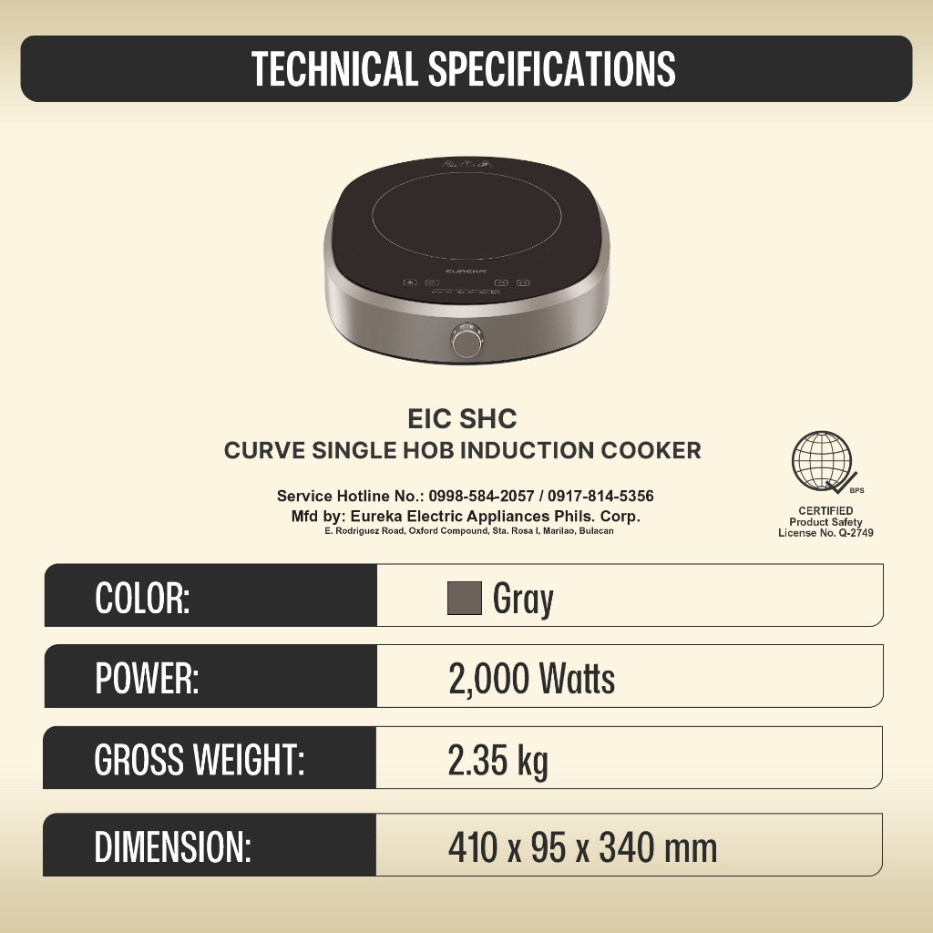 Eureka Induction Cooker Single Hob Curve EIC SHC
