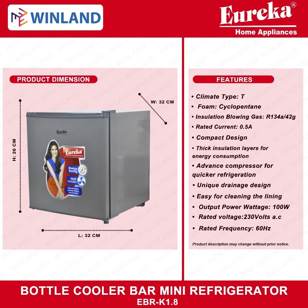 Eureka by Winland Mini Ref Bottle Cooler Bar Refrigerator EBR K-18