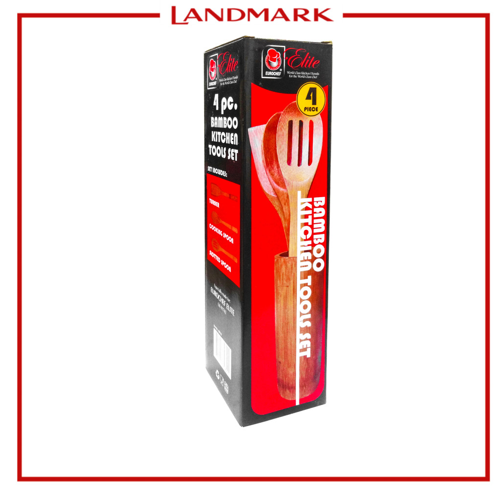 Eurochef 4piece Bambooware Bamboo Utensil Set with Holder 9 x 32.5 x 9cm