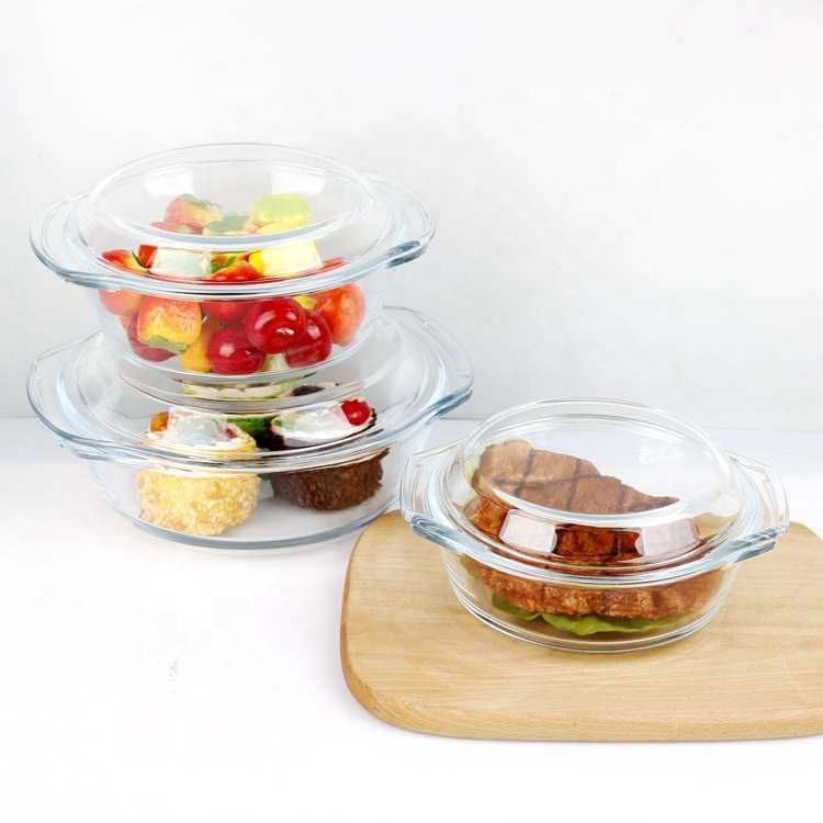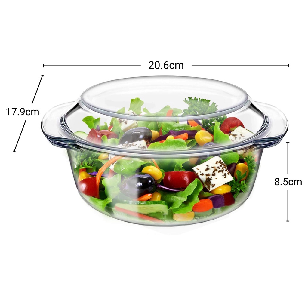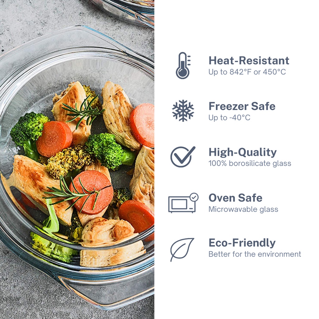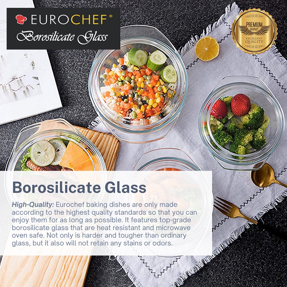 Eurochef BG010 Round Borosilicate Glass Baking Dish 1L Bake Tray Casserole with Cover Lid Handles