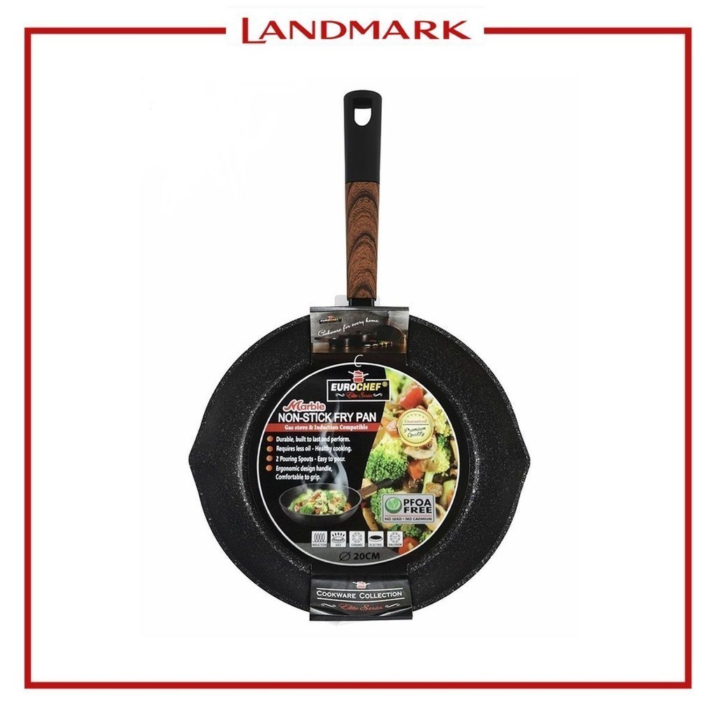 Eurochef Marble Non-Stick Fry Pan 24cm with Soft Touch Bakelite Wood Handle 24 x 6 x 43cm
