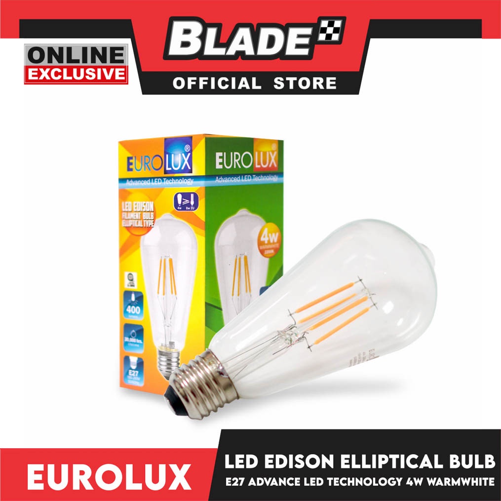 Eurolux Led Bulb Edison Filament Elliptical Type 4w (Warm White) 2200K E-27 50/60Hz