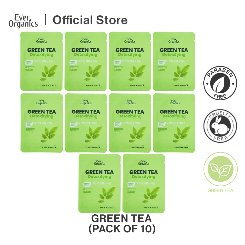 Ever Organics Green Tea Sheet Mask (Pack of 10)