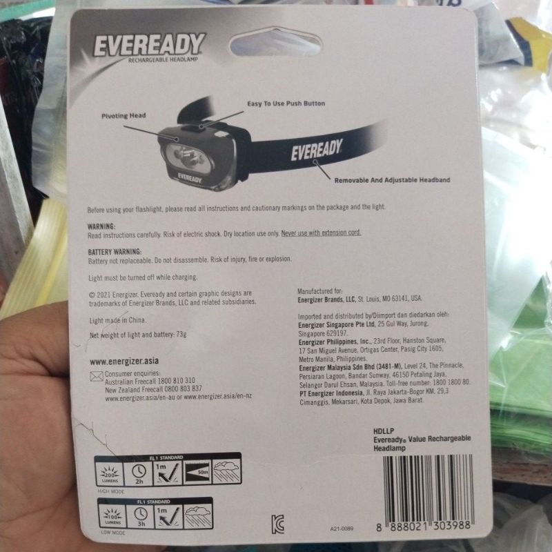 Eveready headlight headlamp rechargeable ORIGINAL