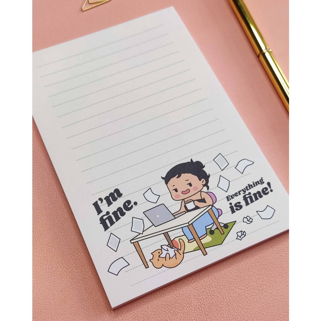 Everything is fine - Adulting Notepad Cute Non Sticky Memo Pad