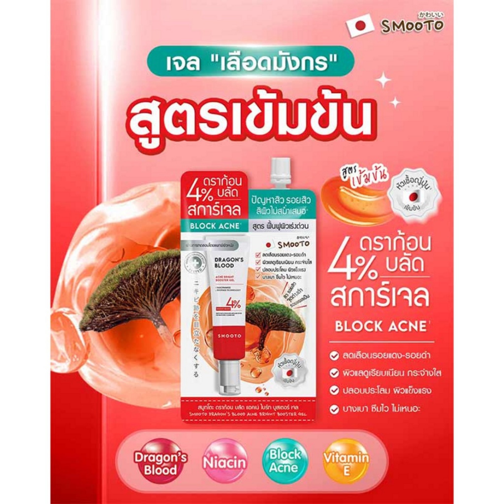 (1 Box) Smooto Dragon's Blood Acne Bright Booster Gel 20g (6 Sachets)