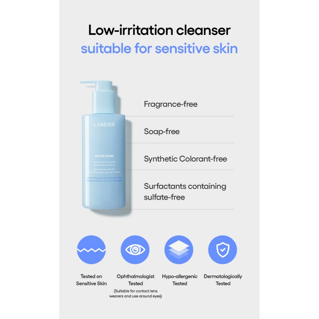 LANEIGE Water Bank Gentle Gel Cleanser (250mL) | Low pH Hydrating Cleanser