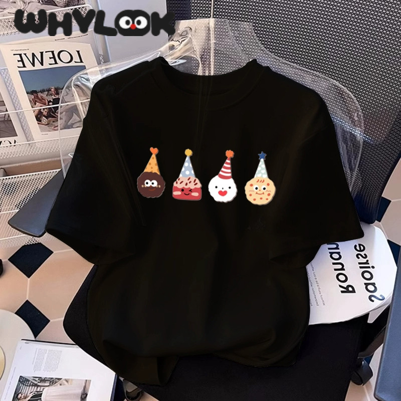WHYLOOK children's t-shirt top pure cotton Girls' clothing t-shirt boy Girl biscuit biscuit cute Print