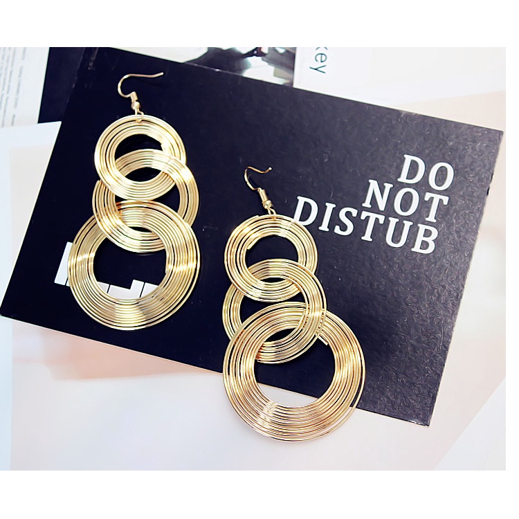 Exaggerated Retro Geometric Multi-Layer Metal Circle Earrings Unique Nightclub for Women